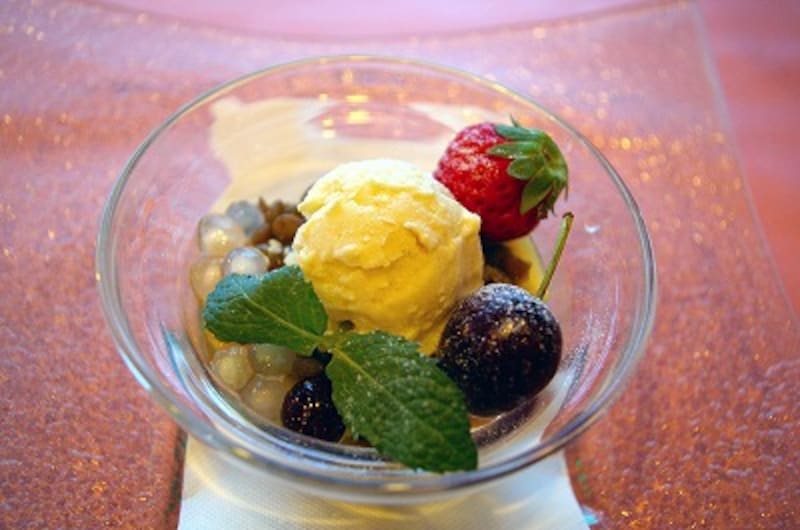 はじめはお隣の天上寺の僧侶の方から、「精進料理をやってくれないか」という申し出があり、どうしたものかと困ったそうです。しかし、イタリアには野菜料理やパスタなど穀物の料理もある、ということで、いろいろ工夫して、とても美味しく食べ応えもあるコースが考案されました。一見、精進料理には見えない派手さもあって、目にも楽しく、食べるとまた驚きがっ!
