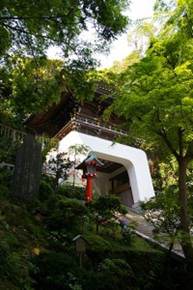 | 江の島の江島神社には、寺のような門もある。今は神社だが、江戸時代までは、やはり、神仏混淆だったのだろう |