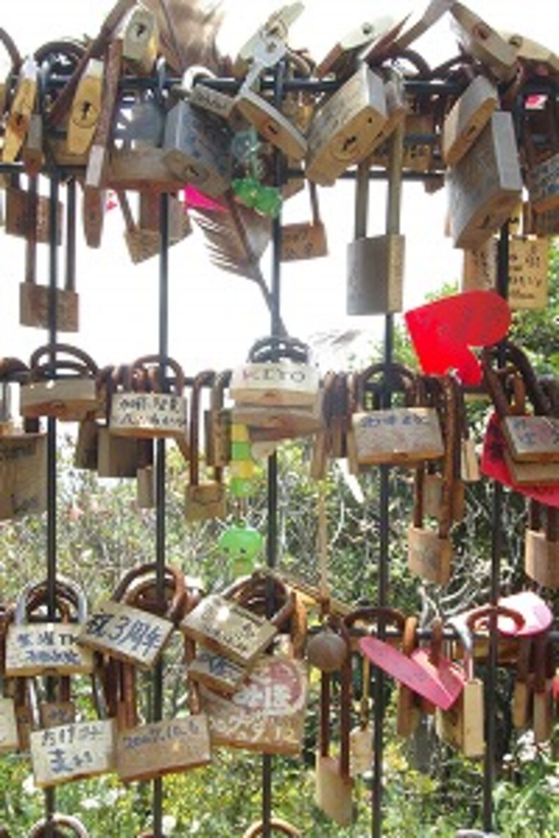 それでも心配な人は、近くのお土産屋さんなどで売っている南京錠を買って、それに二人の名前を書いて、念のために、がっちりと鍵をかけます。鐘の周辺には、熱い想いのこもった南京錠がぎっしり。それを眺めながら、もと、海辺の美女だったわたしは、「ふっ、この人たち、まだまだ青いわね。こんなことをしたら、もう少しして嫌になったときに別れられなくて困るじゃないのさ」と思うのでした。ああ、人に栄枯盛衰の歴史あり。