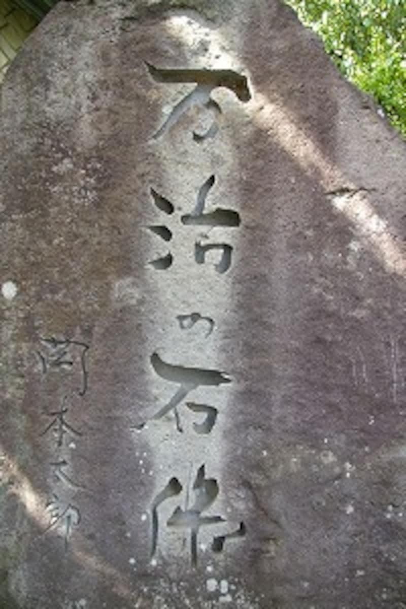 | 近くにある岡本さん直筆の石碑。味のある、素敵な文字です |