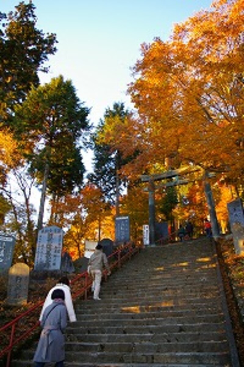 | 御岳神社の石段。御岳山も全山紅葉に彩られます |
