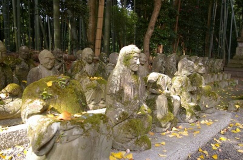 もうひとつの見どころは、境内奥にある石仏群です。たくさんの羅漢さんや観音様が並ぶ様子は壮観。苔むした姿は、デジカメ写真の被写体にも絶好です。たいへん素敵な千手観音も発見し、石仏マニアのわたしは嬉しくてたまらないのでした。