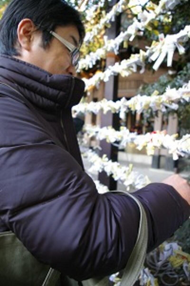 凶札が出た場合は、「凶を寺社にとどめて良い運勢が来ますように」と木の枝に心を込めて結んで帰ります。つまり、本来は凶札が出たときのみ結ぶのですが、恋愛について悩む人が多いため、「縁を結ぶ」という意味もあって、何が出ても、木に結んで帰るという風習も生まれました。しかし、基本的には、吉凶に関わらず、持ち帰ってもかまわないそうです。おみくじにおいては、吉凶が重要なのではなく、詳しく書いてある生活上の指針を守ればよい運が来るとされるからです。