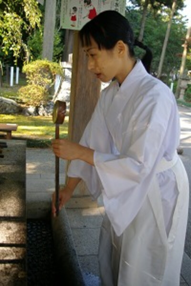 ※この際、ひしゃくに直接口を付けないように。