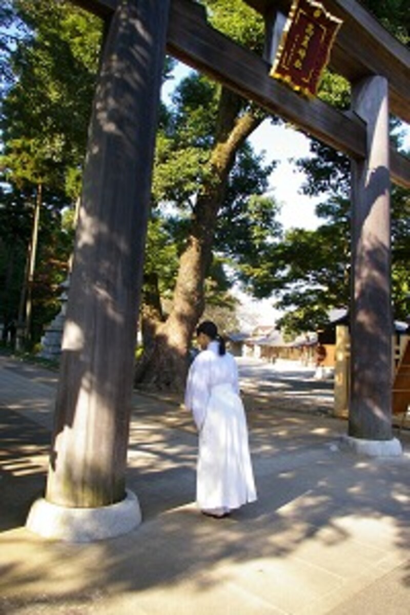 | 鳥居をくぐる前にまず一礼。けっして真ん中を歩かないこと |