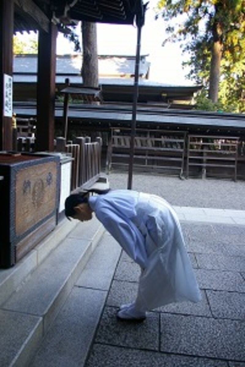 正しい作法は? ゆっくり丁寧に、90度体を曲げる、拍手を打つときは右手を少し下にずらす、の三つがポイントです。