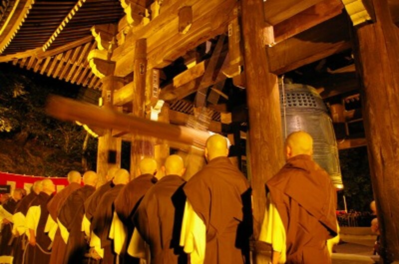 A.多くの場合、紅白歌合戦が終わるくらいの時間に撞き始め、1時くらいまでには撞き終わります。しかし、これはお寺によってまちまちです。京都で一番有名な知恩院の除夜の鐘は、10時ごろから僧侶による法要がはじまり、40分ごろから撞き始め、年内に撞き終えてしまいます。