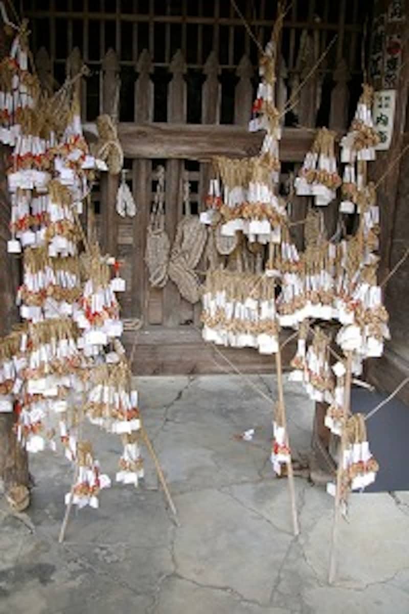 | 会津のお寺には、わらじが奉納されていることが多い |