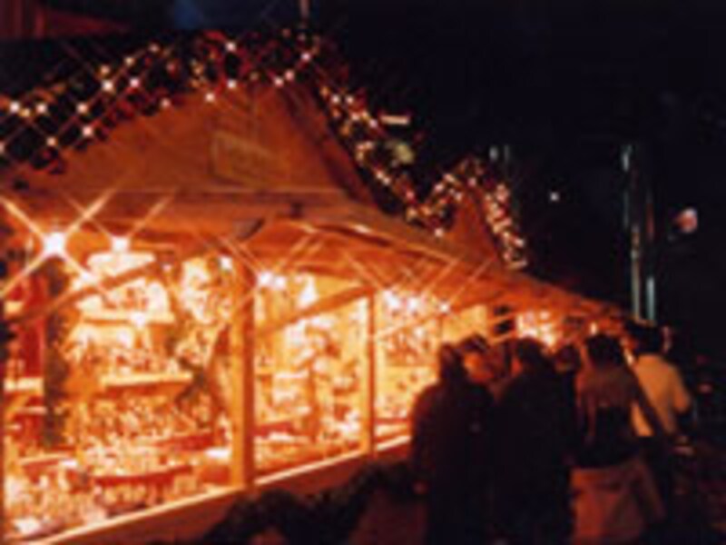| 地上170m・360度の視界を誇る屋上空中庭園が人気のデートスポット『新梅田シティ』では、今年も『ドイツ・クリスマスマーケット大阪2004』を開催中。約100万人の人出が予想されるなど女性やカップルに大好評の一大イベントです。 |