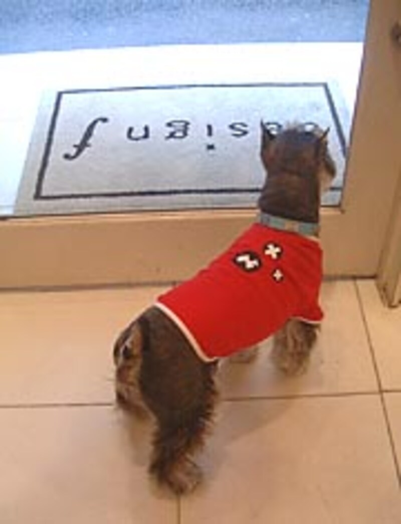「いままでTシャツやセーターなどを中心に商品群をつくってきましたが、ここで一度それを整理して2つの流れにしようと。『D.F.D』はいままでの路線を追求するポップ&キュートなカジュアル・ライン。『designf』はモダン・ドッグ・リビングをコンセプトに、ベッドやソファーなどのリビング用品からカラーやリードまでをふくめたトータル・ファッションを追求していくと同時にオーダーメイドにも応えていく路線ということになります。私自身オープン当初からいまのデザインfの定番だけじゃなくて、ファッションを生活全般から考えることをやってみたかったし、お客様の声をお聞きしていくと、やっぱりオーダーメイドに対するニーズも高い。それで思い切って変えることにしました」たしかにデザインfのラインアップは、小型から中型犬が中心で、ラブラドールやサルーキといった大型犬のものは少ない。この他に超小型犬向けには『infant』シリーズを出してますから、そこだけが弱いゾーンだったわけですね。