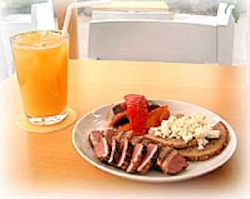 カフェコーナーもゆったりしたスペースがあり、オリジナルメニューがたくさん。何をオーダーしようかちょっと迷いましたが、今回は鴨のスモークとラタトゥーユにガーリックチーズの盛り合わせ、それにアプリコットとオレンジのジュースをオーダー。一皿でいろいろなテイストが楽しめる一品でした。折から海からの風が吹いてきて、まだ3月だというのに葉山の日差しはとてもあたたかい。ロケーションのよさがおいしさを倍増させます。もちろんカフェも犬連れOKですから、いつのまにかテーブル席はご近所の散歩仲間たちでいっぱい。みなさん、すっかりくつろぎムードでこの心豊かな空間を楽しんでらっしゃいました。
