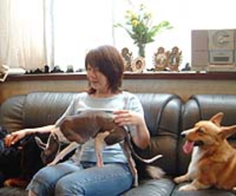 ここはオーナーの廣田美嘉さんの自宅リビングをそのまま使った、ペットの託児所 。一歩中に入ると、ホテルはリピーター客の犬たちでいっぱい。 まるでいろんな犬種を集めた犬の展覧会場のおもむきです。