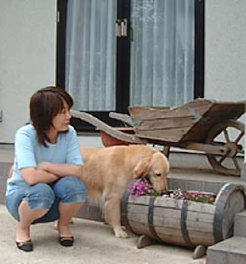 | ★お庭で遊ぶ預かり犬と廣田さん |