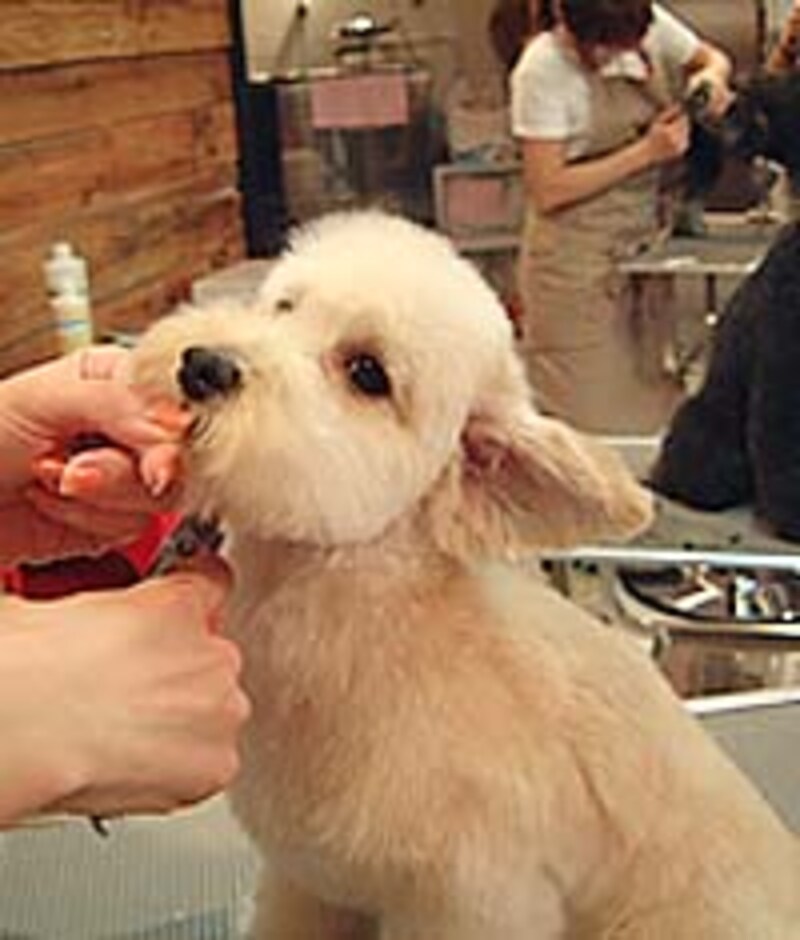 そしてとりわけ情報感度の高い小型犬の飼い主たちの間で、ウワ サがウワサを呼び、いつかDogManと江頭さんはペット・トリマー界のカリスマと呼ば れるようになりました。常識にとらわれないで、その子その子のかわいらしさを引き 出す姿勢が「うちの子が一番!」と思っている飼い主に支持されたというわけです。