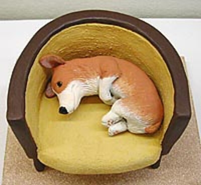 テーマは「椅子+犬」ということで椅子と犬との絡みがポイント。椅子のデザインとそれぞれの犬種の特徴や仕草をうまくマッチさせておられて思わずため息が出ちゃいます。よく見るとリアルだけど、みんなユーモアたっぷりの表情をしてますよね。