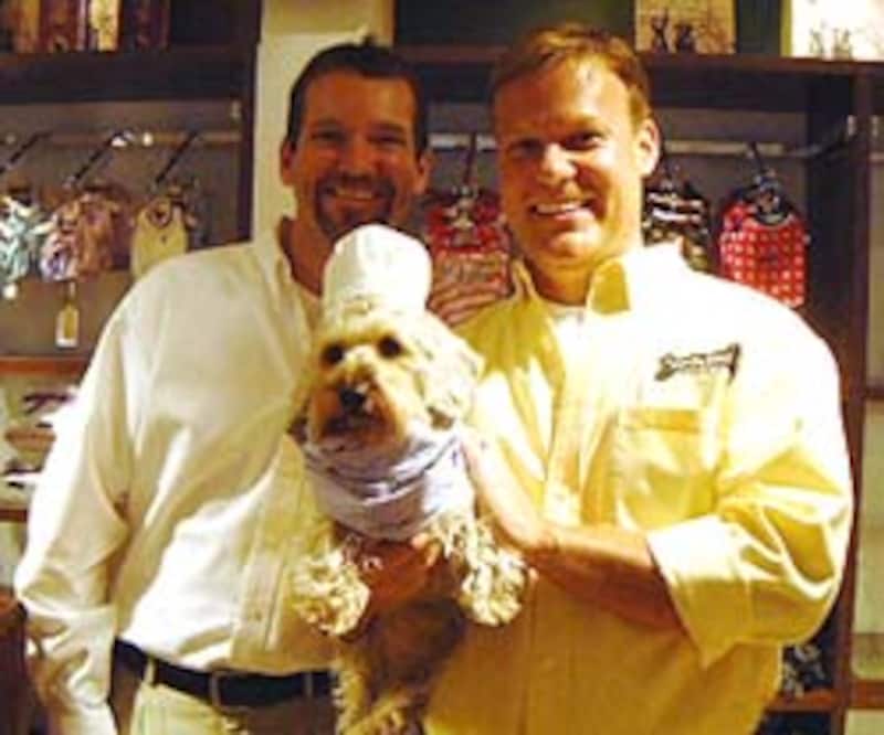 | ダン・ダイとマーク・ベックロフ 抱かれているのは看板犬のイリスちゃん |