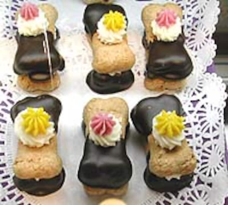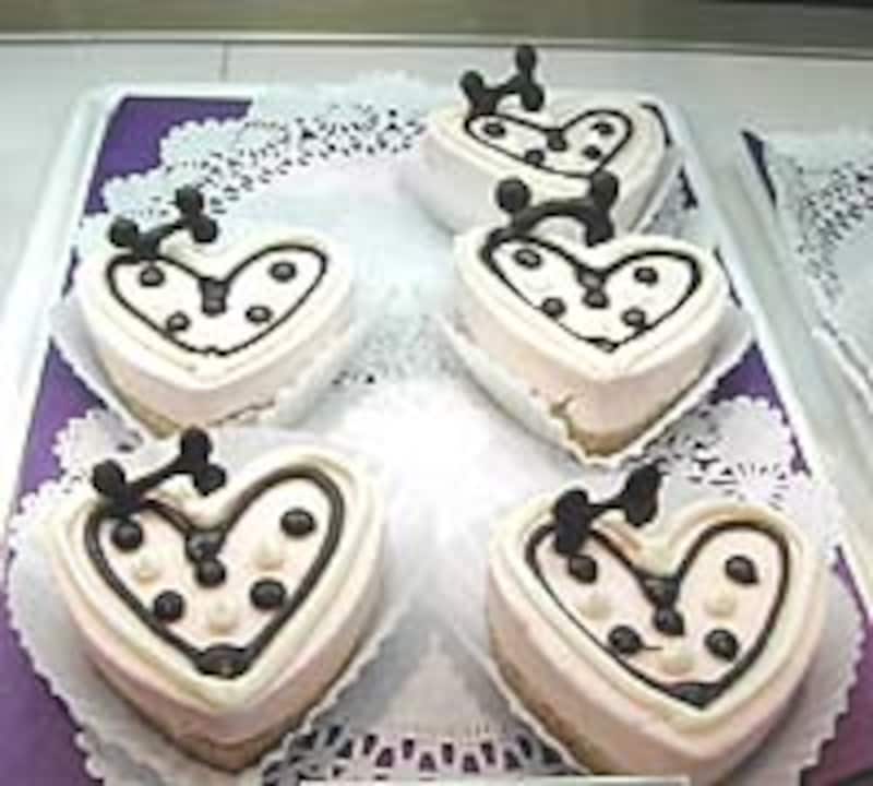 当日は店舗のショウウィンドウに所狭しと並べられた色とりどりのおやつに報道陣たちのカメラがいっせいに向けられていました。テーブルの上に乗っていれば思わず口にしてしまいそうなほど(人間の)ケーキにそっくりなクッキーサンドのビッションバーは、トッピングのクリームがハーブで色づけされているとか。おいしそうなチョコレートがかかった骨形クッキーはラージボーン、愛犬の名前を入れてくれるサービスもあるそうです。 そしてそしてヨーグルトをクリーム代わりに使ったセレブレーションケーキは丸型と骨型の2種類、誕生祝いなどに使え贈り物としても最適です。
