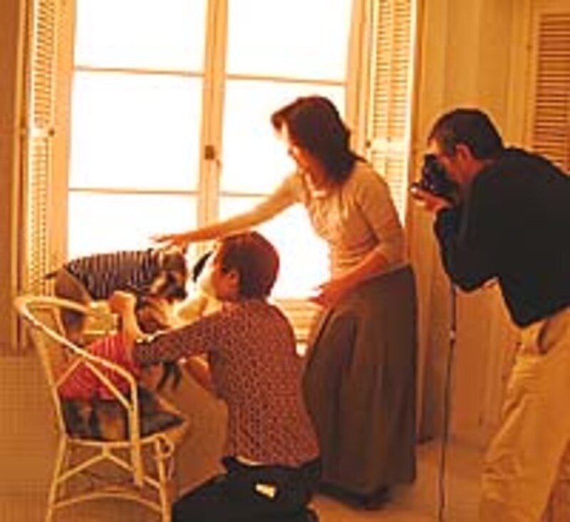 システムとしては、それぞれに特徴のある10室の中から気に入った部屋を2つ選び、そこで専属フォトグラファーの守屋敏彦さんとプロデューサーの工藤さんが協力して愛犬を撮影してくれるというもの。撮ってもらえる写真はサービスサイズで180カット(ネガ渡し)、気に入った1枚を半切りサイズ(340mm×410mm)にプリントしてくれるというサービスも付いています(お届けは1週間後)。