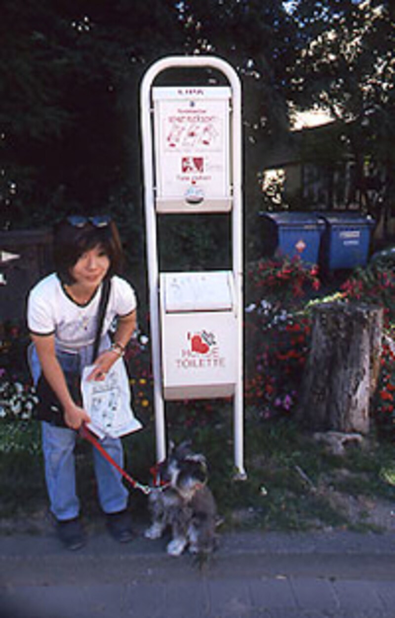 95年の旅では気づきませんでしたが、アッシュと行った99年には、公園や町の小さな広場などにバスストップのようなポールが立っていて、そこには犬のウ○チ袋が備えられているのをよく見かけました。これなどは行政サービスの一つだと思いますが、こうした施設が生まれるためには、やはり正常な繁殖・流通が当たり前になり、みんなが自然な形で犬との共生を受け入れられるようにしていくことが大切なのだと思います。