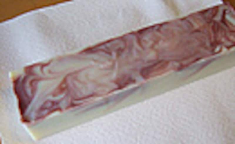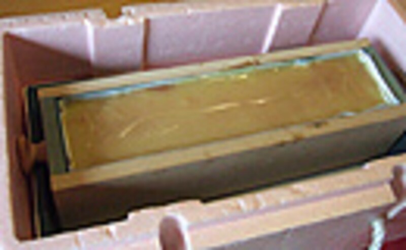 すると、あれよあれよという間に、透明だった油が白く濁り、ドロ~っとしてきます。そうしたら、ここで「スーパーファット」と呼ばれる、使い心地や機能をアップする油脂(ホホバ油など)や、愛犬にあったアロマオイルやハーブ、クレイなどのオプションを少量加え、せっけんの型枠に流し込む。あとはそれを保湿箱に入れて24時間寝かせ、固まってきたら型枠から出して約2週間乾燥させる。その後、使いやすい形にカットしてさらに3週間、風通しのよい冷暗所で熟成させれば“出来上がり”です。