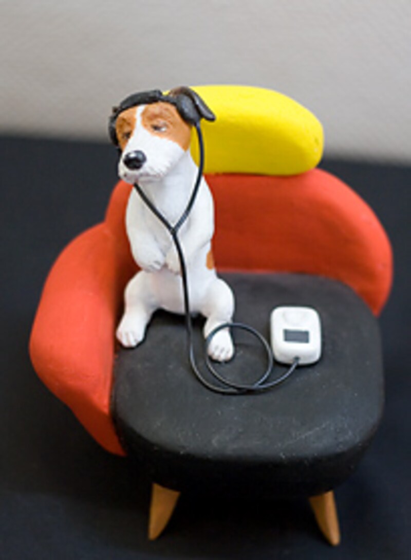 iPodでお気に入りのミュージックを楽しんでいるのはジャックラッセルテリアかな?