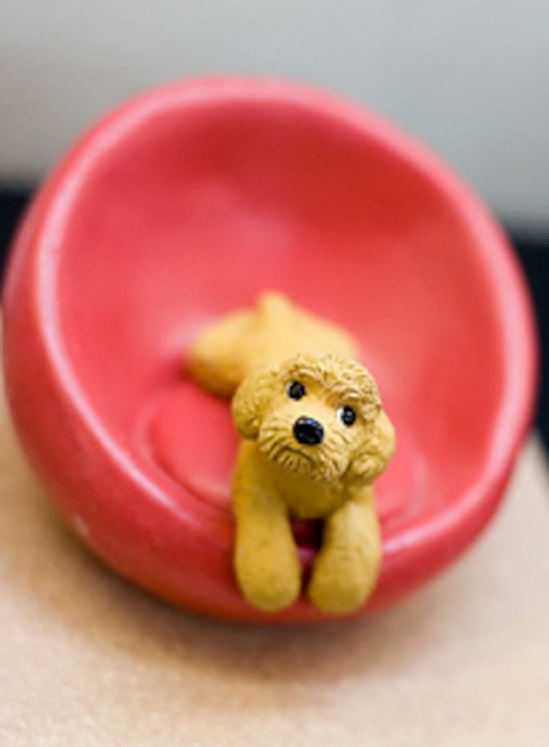 2000年に粘土と出会い、愛犬ぱっくくんをつくってみたところ、ネットを通じて犬友だちから愛犬をつくってほしいとの依頼が来るようになったとか。今では、各有名デパートのイベントなどにも出展されている人気作家さんです。