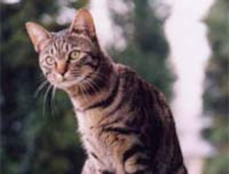 【キジトラ・キジトラ白】(モデル:明日香ちゃん)鳥の雉(キジ)のような模様である事から「キジトラ」と言います。ご覧の通 り、茶にこげ茶のトラ模様です。 キジトラ白と言うのは、全体がキジトラ模様で、手足の先やお腹、顔などが白い子を言います。 アメリカン・ショートヘアで言うと「ブラウンタビー」に似ています。(タビーというのは縞柄の事です) 稀に、縞でなく豹柄になる事もあります。 |