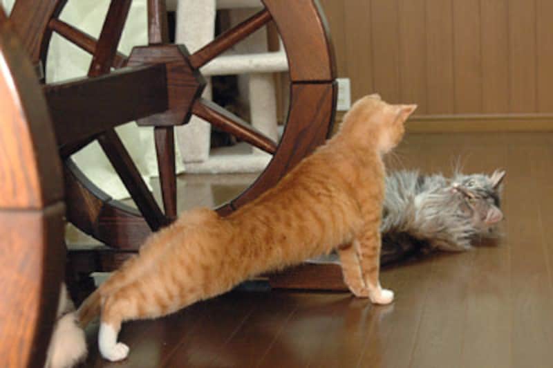 お仕事で疲れたあなた、あわただしい時間の中で潤いが欲しいあなた、やっぱりネコが大好きなあなたに。様々な表情であなたを癒してくれるネコがここにいますよ!6/11 UPは『アキレス腱を伸ばす!』です!