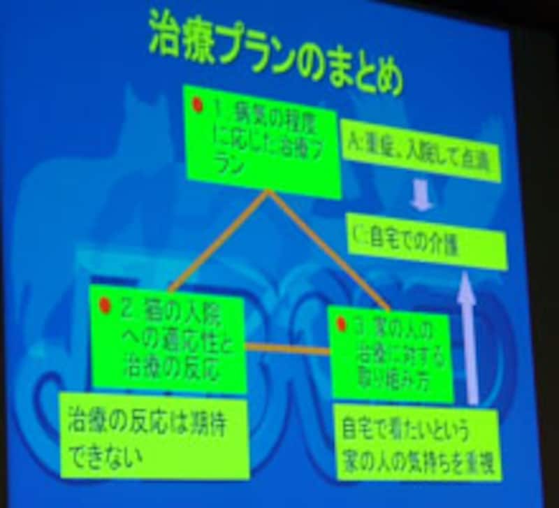 動物が苦しむことも避けなければならない→生活の質を維持する治療も必要。