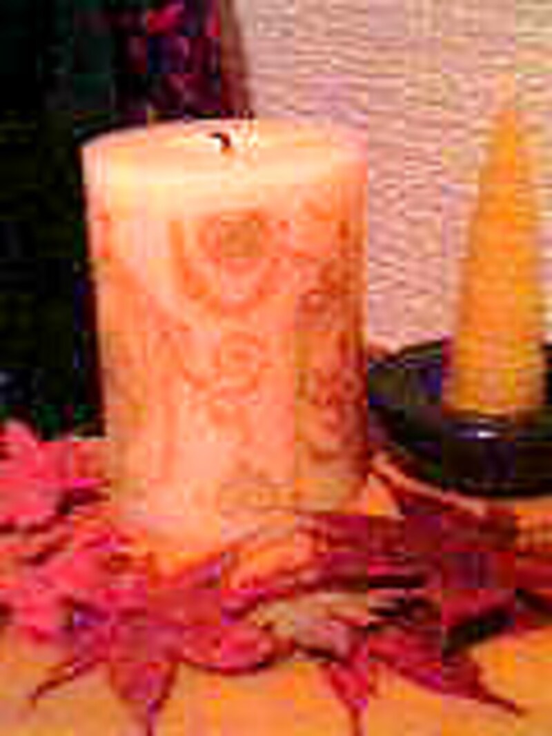 | キャンドルの足元に落ち葉をならべただけでも、そこは秋♪ |