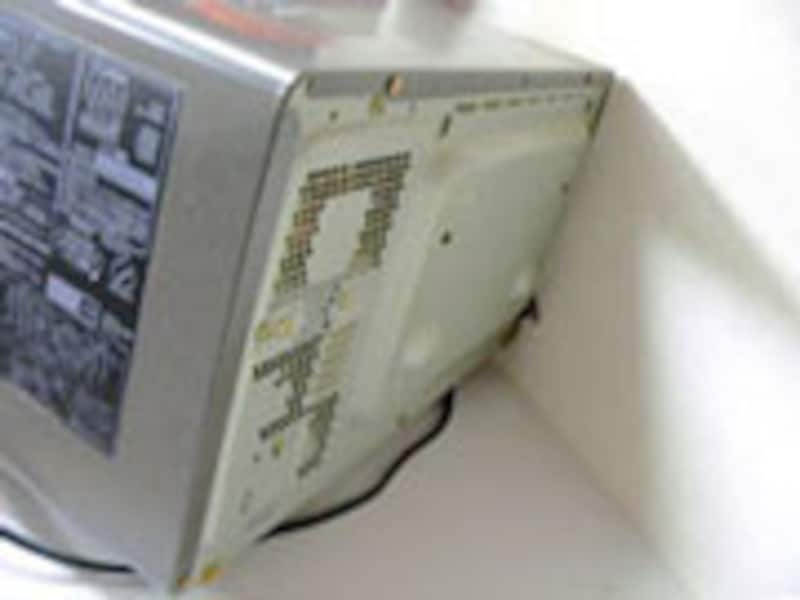 レンジ本体の外側も拭いてあげます。固めに絞った濡れタオルで、上や前面、側面はもちろん、後ろ等にある通風口も。後ろや裏側は結構な量のホコリがついていて、これまた性能ダウンのもと。