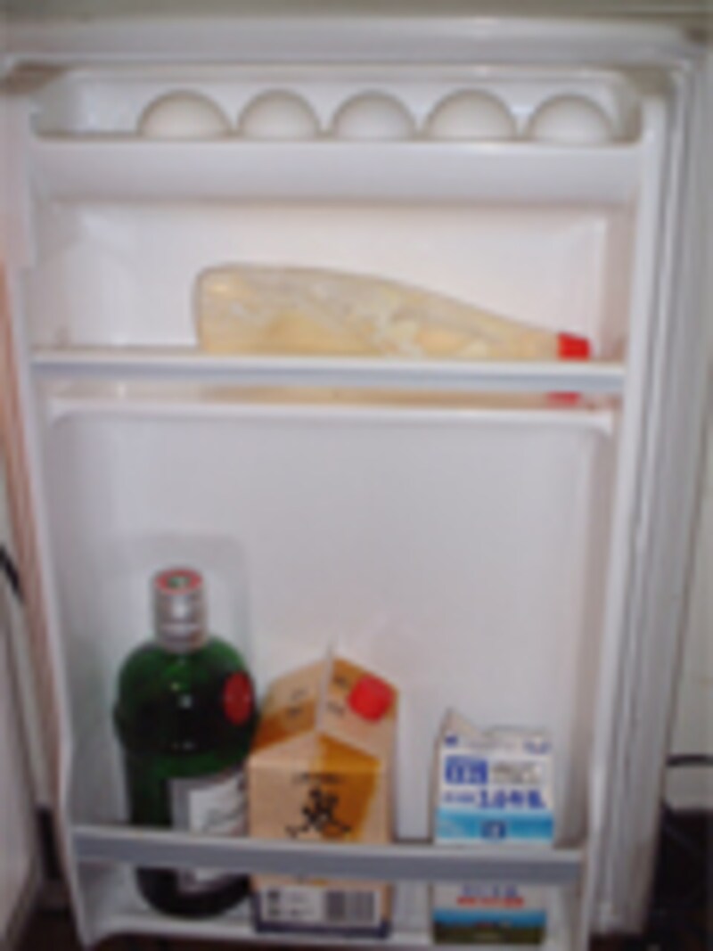 ― 冷蔵庫の大きさは? 100リットル。 ― 冷蔵庫・冷凍庫の常備品を教えてください。 納豆・卵・牛乳・ハム・ビール。冷凍庫には湿布などが入っていますが、食品はありません。 ― 調味料のストックを教えてください。 |