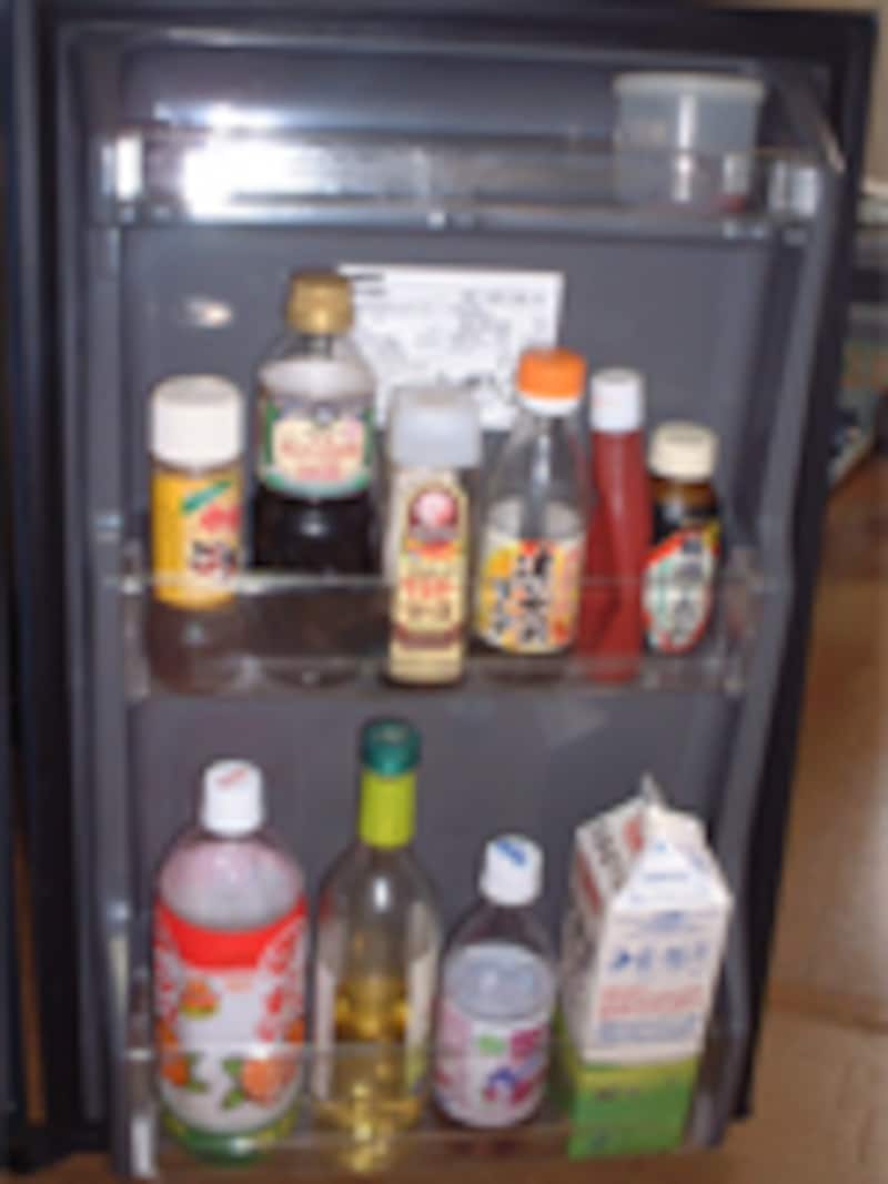 ― 冷蔵庫の大きさは? 120リットル。この大きさでちょうど良かったです。 ― 冷蔵庫・冷凍庫の常備品を教えてください。 牛乳・納豆。冷凍庫には、市販の冷凍食品が入っていることもあります。 ― 冷蔵庫の選び方のアドバイスはありますか。 冷蔵庫の上に、電子レンジが置けるかどうかを確認した方がいいですよ。耐熱性の問題で置けない場合もあると、電気量販店の店員さんから聞きました。 ― 調味料のストックを教えてください。 |