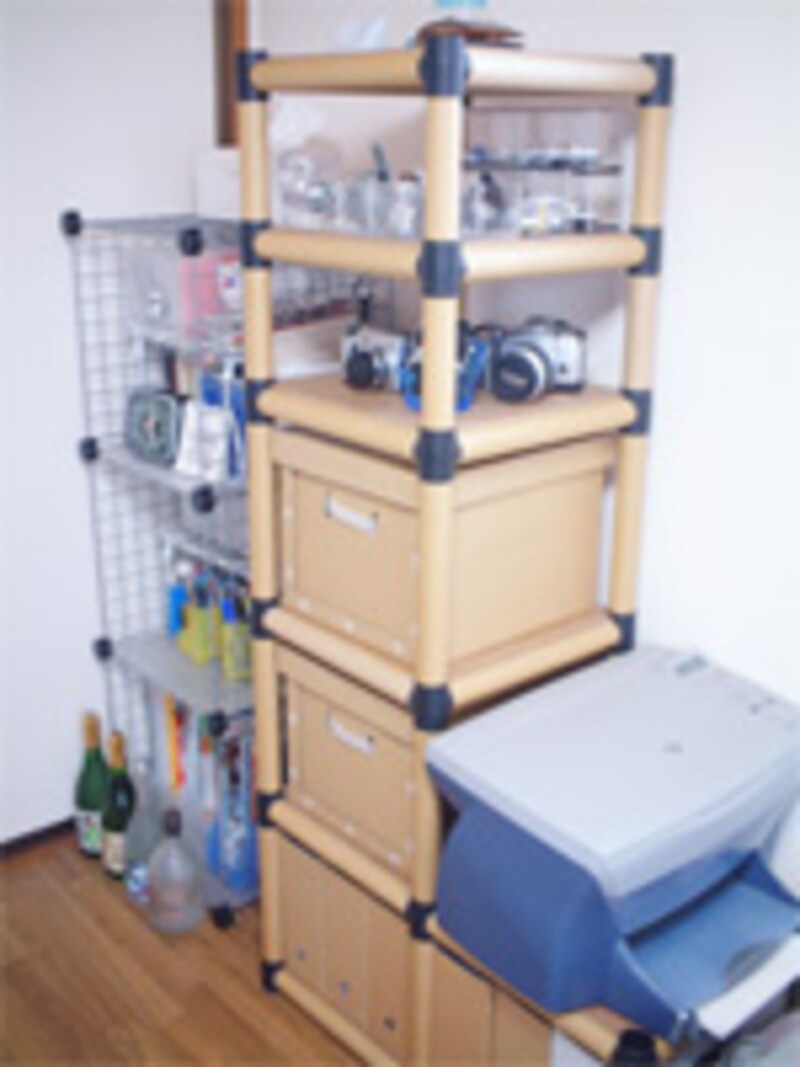 | 無印良品で販売されている「丸紙管ラック」で、変形も塗装も比較的簡単にできます。 |