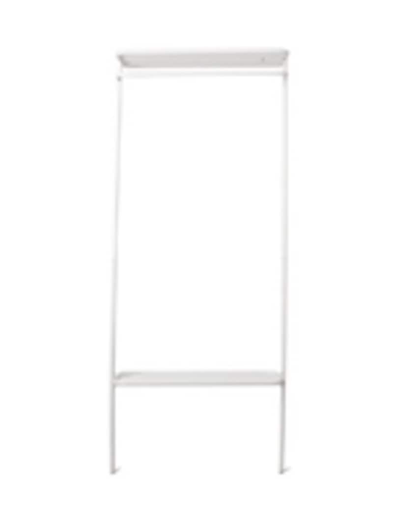 | Duende WALL 02 HANGER(WHITE) \15,750 壁掛けラックと同シリーズのハンガーラック。並べて置けば、さらに収納力がアップします。洋服などの「見せる収納」に。 |