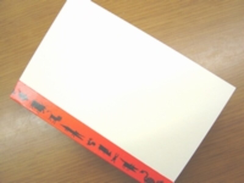 テープは、年賀状のタテ方向よりも少し長めにカットしておきます。模様のはいった楽しいテープを使うと背表紙としてきれいですね。