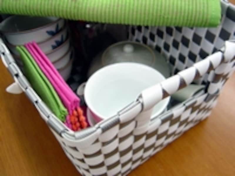 棚にしまったり、テーブル上に置いておきたいモノをひとまとめにしてバスケットに納めれば、僅かな手間で使いやすく片付けやすい状態を作れます。CD、ゲームソフト、コミック本など四角いモノをはじめ、ティーポットやカップ、コースターをひとまとめにしたティーセット、マグカップ、お皿、フォーク、スプーンなどの朝食セットといった具合にセット収納がお薦めです。