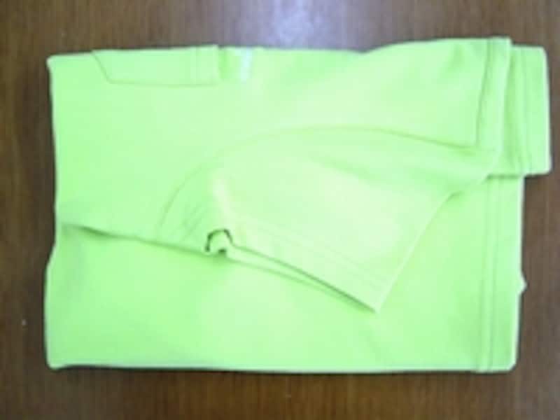 ここを指でつまんだ時に左腕を下にして右腕と交差するわけですが、ここのさばき技が決まると仕上がりも整うのです。と同時に、この動作が裏技のお楽しみでもあります。多くのお子さんがお母さんと一緒にシャツをたたむようになった理由がここにあるようです。