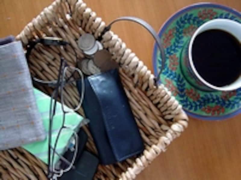 そこで、帰ったらまずポケットの中身は全部出してしまうことを癖にしてください。出すと言っても、その辺にバラバラと置いてはいけません。散乱しないようにトレイを用意して、そこに外した腕時計、携帯、小銭、財布、キーケースなどをまとめて置いておくのです。