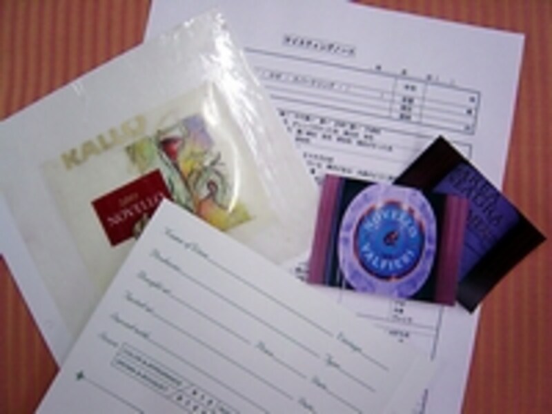 ・テイスティングシートをテーブルに備えておくこと。この用紙に特徴を記録するのですが、デジタルカメラか携帯で瓶のラベルを撮影して、あとでプリントしたものをシートに貼っておくのです。