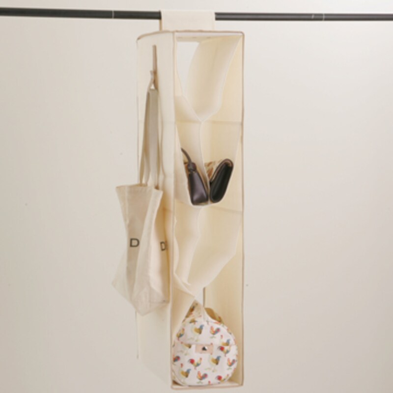| 吊り下げ式の収納ラックを使えば、バッグが一望できて選びやすい。参考商品:バッグラック |