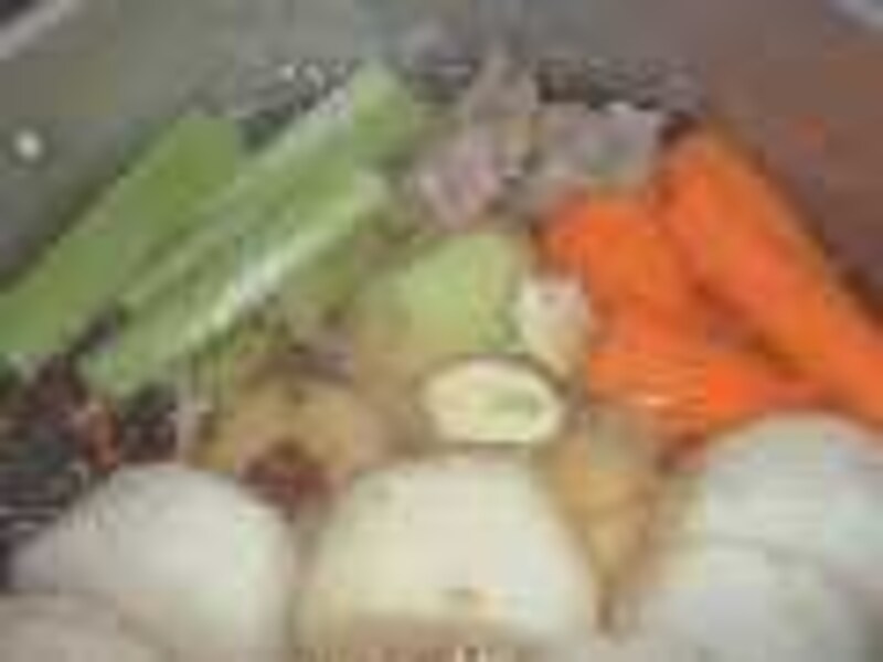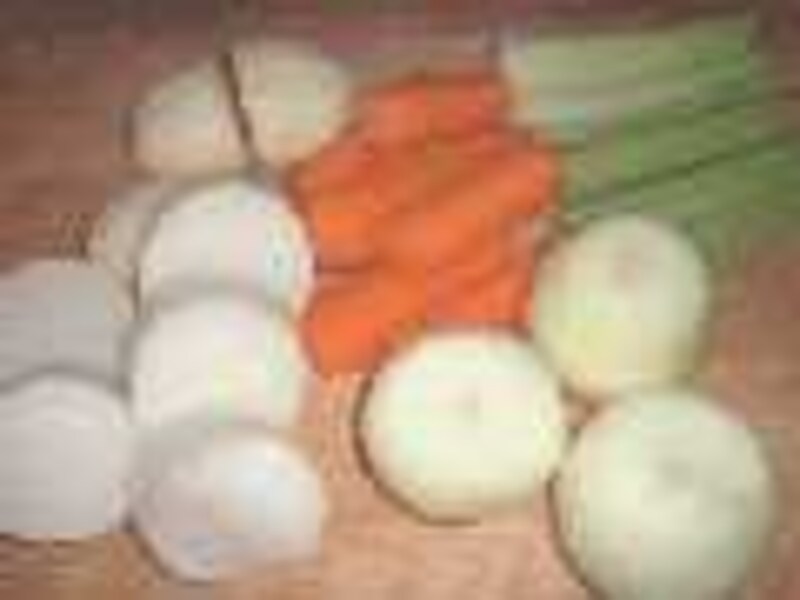 玉ねぎとじゃがいもは皮をむき、そのままの大きさで。