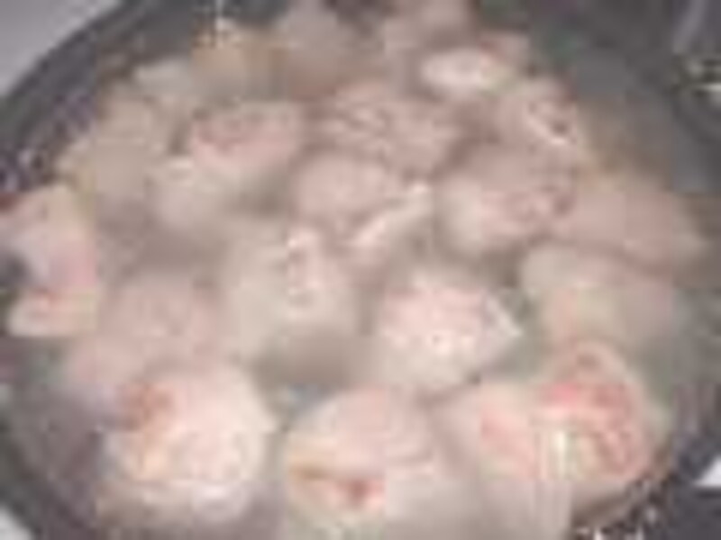 沸騰したら、アクをよくとり、フタをして、弱火に。「シュッツシュッツ」という音がしてから30分、弱火のまま加熱。