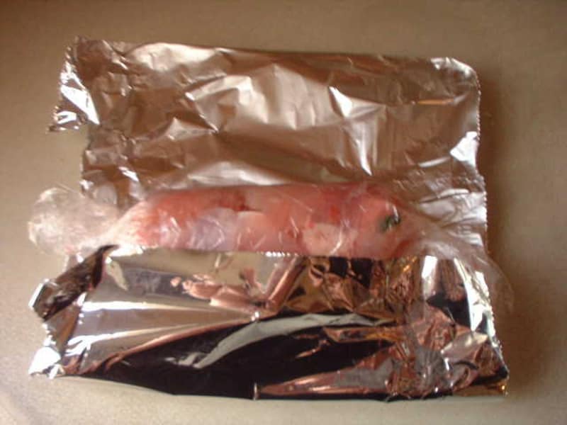・具を巻いた鶏肉をラップでくるみ、その上から