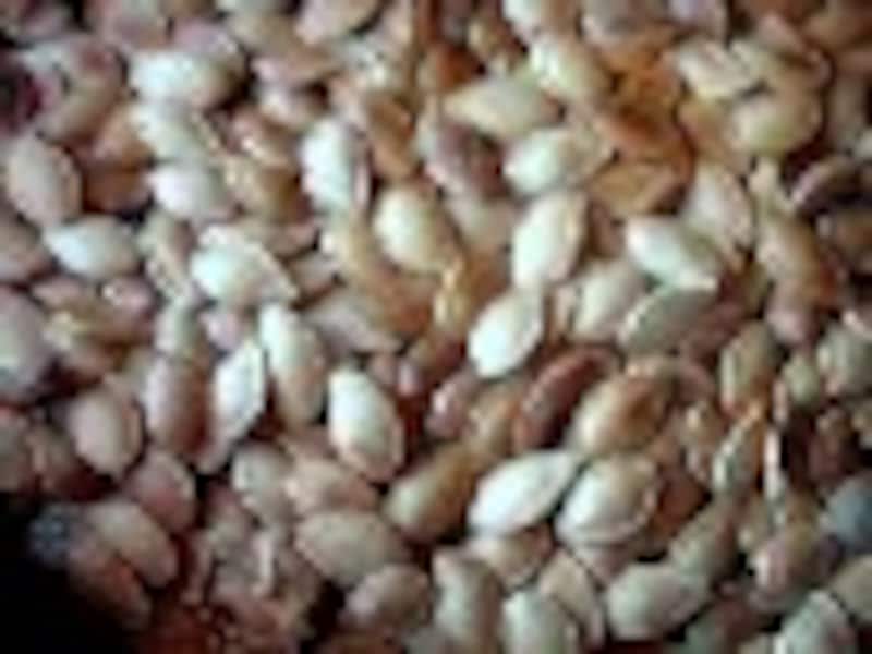 ● かぼちゃの種のスナック材料:くりぬいたオレンジかぼちゃの種の部分