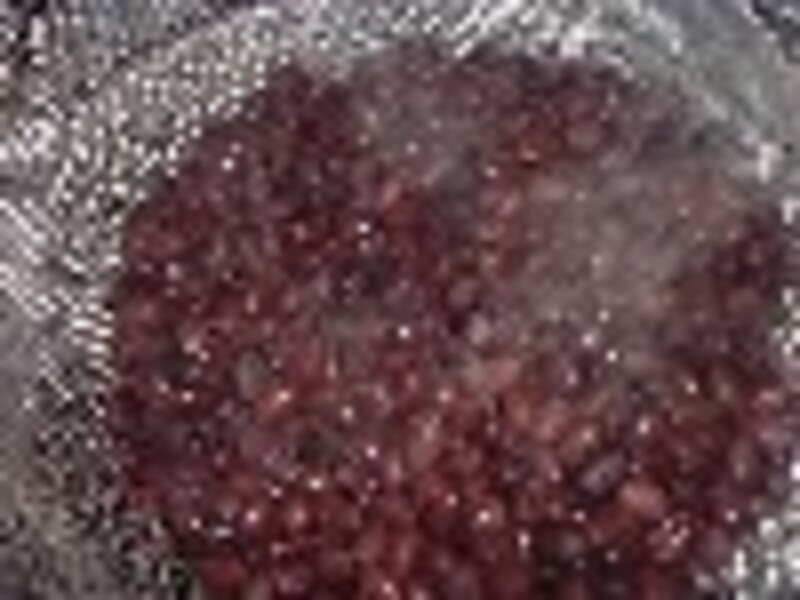 やわらかくなったらざるにあげ、一度水洗いしてから、ざるに上げたまま冷まします。