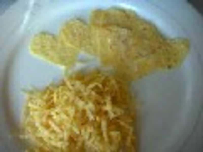 あわせ調味料を作っておき、また卵にみりん(小さじ1)と塩1つまみで味付けし、薄焼き卵を2枚程度焼きます。焼いた薄焼き卵は、クッキー型を使って、お好みの形に抜き(私はハートを使用)、残った部分は調理ハサミで細切りにして、錦糸玉子状に。