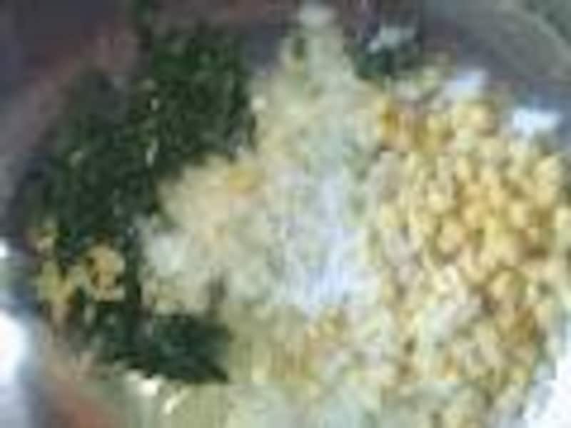 ほうれん草(ゆでたもの:50g)、玉ねぎ(50g)、
