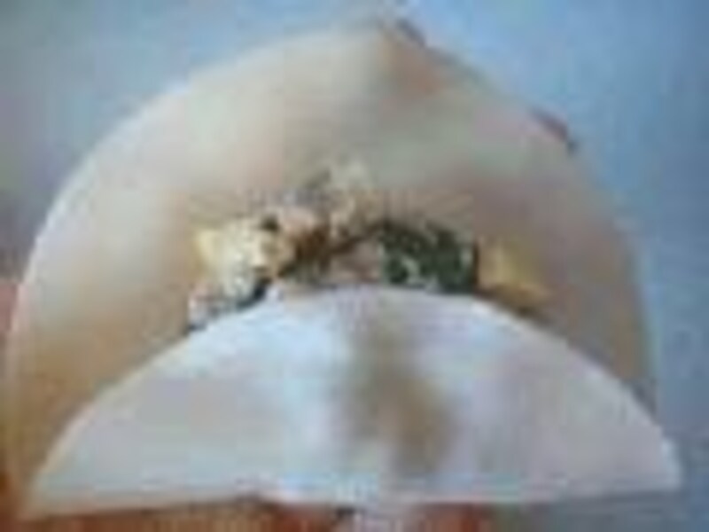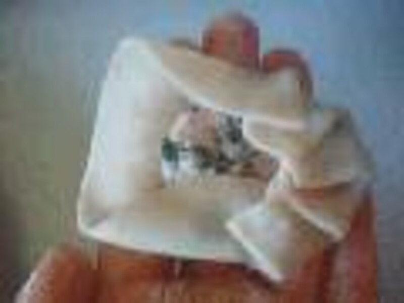 さらにひだを重ねるように内側に向かって折り進み、丸い形に包み閉じます。