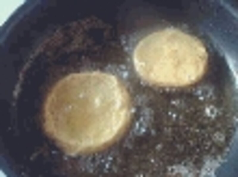 衣をつけた玉ねぎを揚げ、両面がきつね色になったらできあがりです。